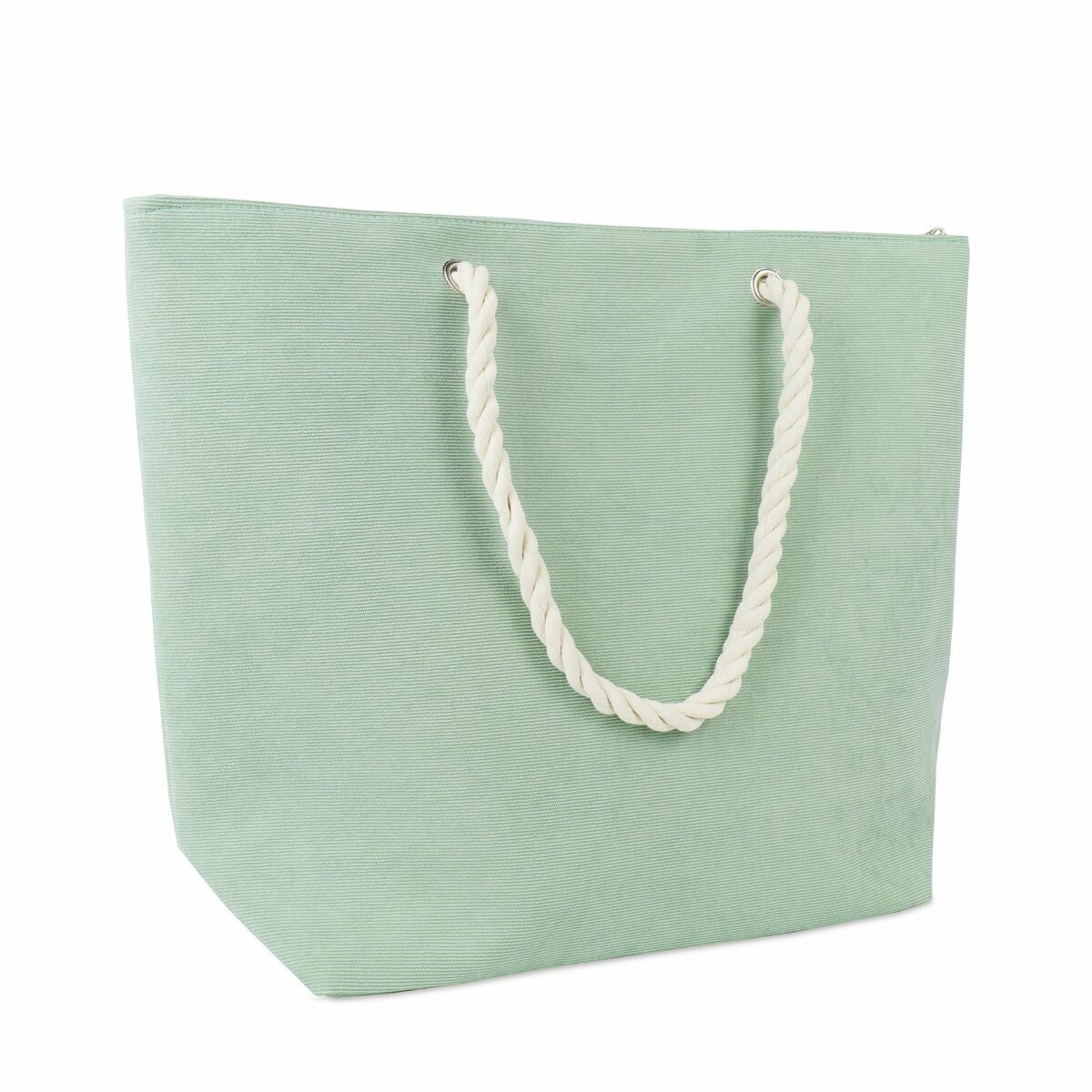 Corduroy shopper – Lichtgroen is een originele en herbruikbare strandtas met een stijlvolle look.