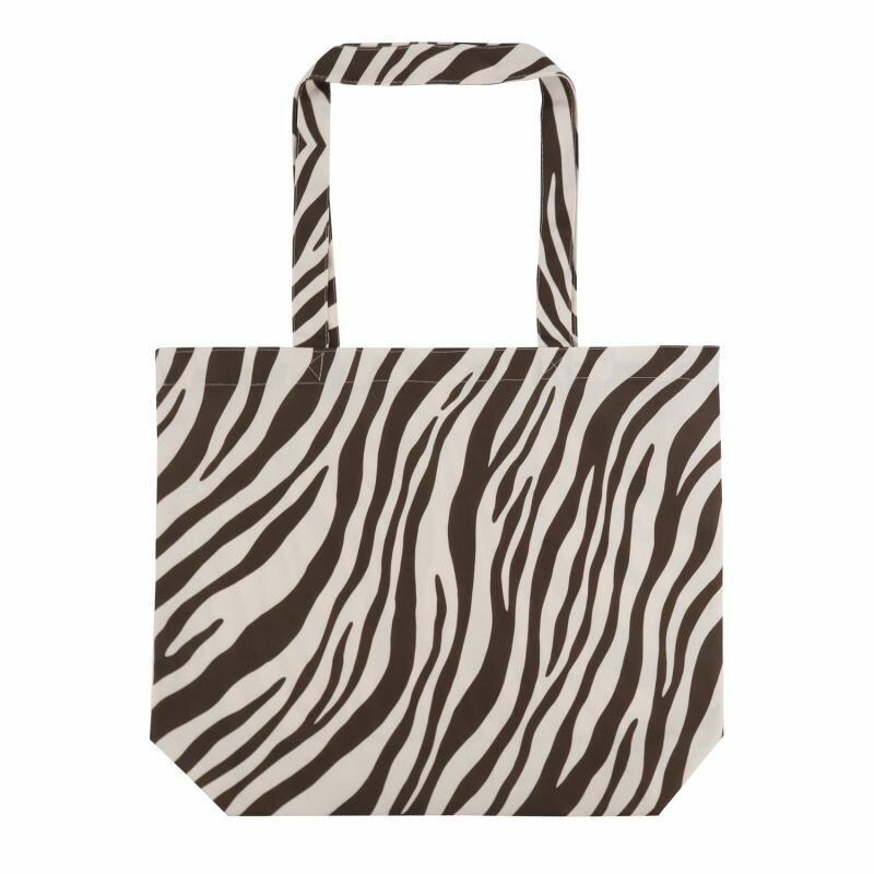 Deze katoenen tassen zijn verkrijgbaar in 4 verschillende dierenprints: Panter, Luipaard, Jaguar en als getoond model voorzien van Zebraprint, voor een ieder wat wilds.